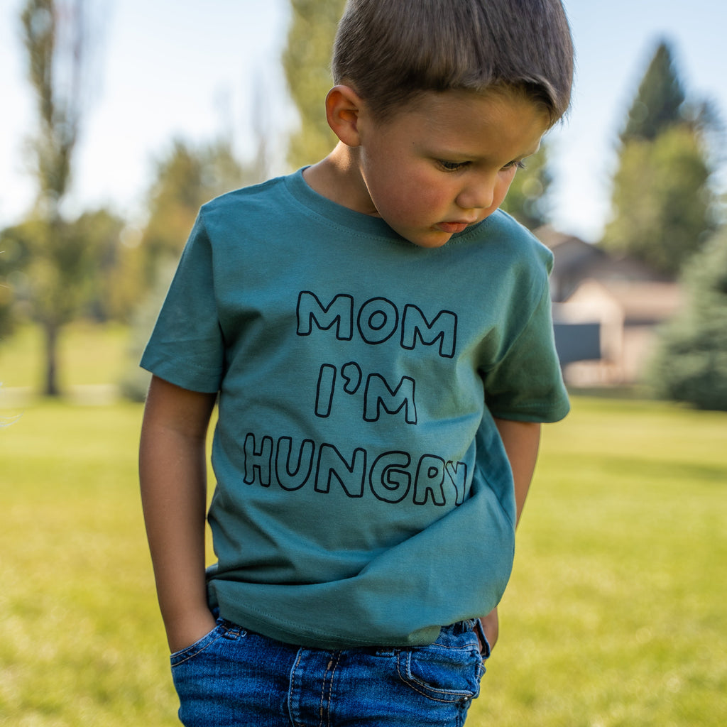 Tiny human, big appetite. This basil green tee boldly declares “Mom, I’m Hungry”, perfect for the snack-time superstar of your household. Made from soft, breathable cotton, it keeps kids comfy during play, naps, and of course during snack time!