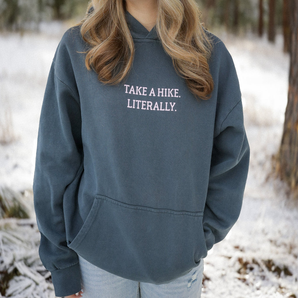 Hit the trails in style with this oversized unisex hoodie that doubles as your hiking manifesto. Crafted from pigment-dyed fabric for that perfectly worn-in look, it's designed to move with you whether you're summiting peaks or just summiting your couch. The relaxed fit gives you room to layer up for mountain mornings, while the playful "Take A Hike. Literally." message keeps your sense of humor intact. Perfect for outdoor enthusiasts who appreciate a good pun as much as a good view.