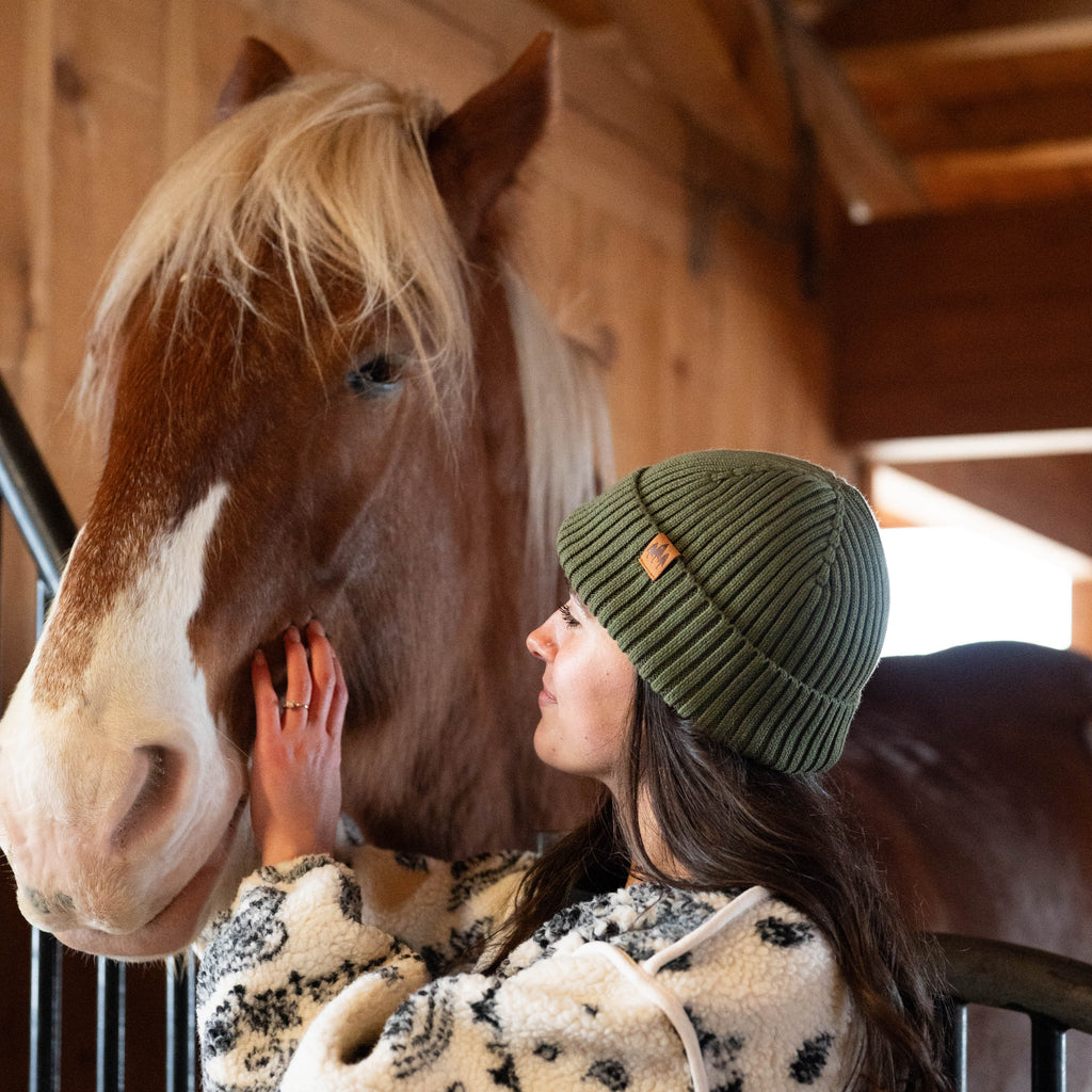 Stay cozy in style with this classic cuffed knit beanie. Made from 100% cotton for a soft, breathable feel, it’s finished with a suede leather patch embossed with our signature three-tree design. A timeless essential for chilly days — perfect for everyday wear, outdoor adventures, or gifting.