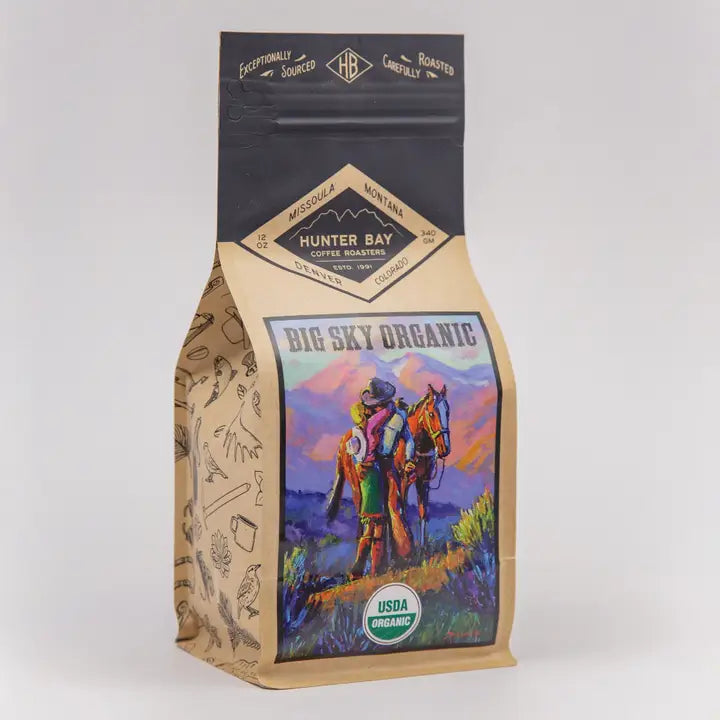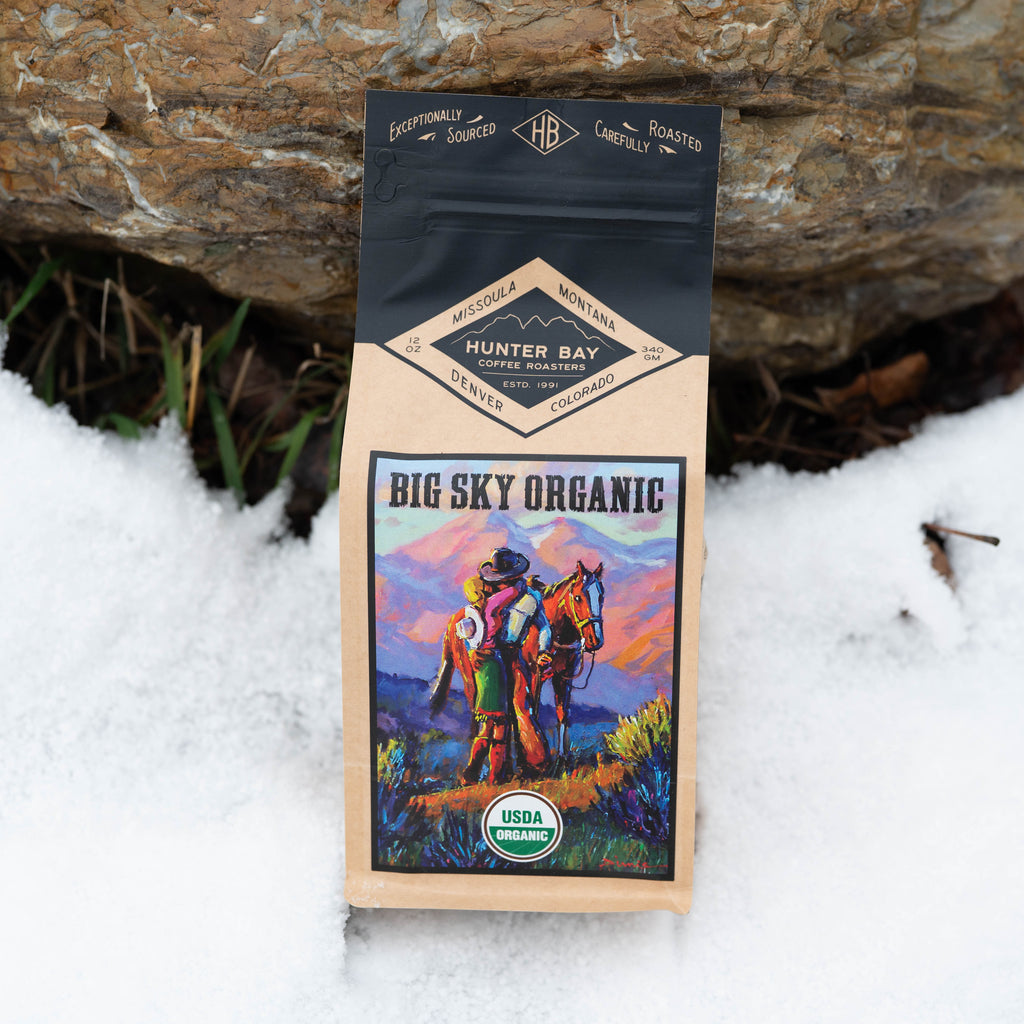 Big Sky Organic is a three-coffee blend that balances the rich and delicate flavors of dried fruit, toasted graham cracker and dark chocolate followed by lingering caramelized sugars commonly found in a classic Vienna style roast.