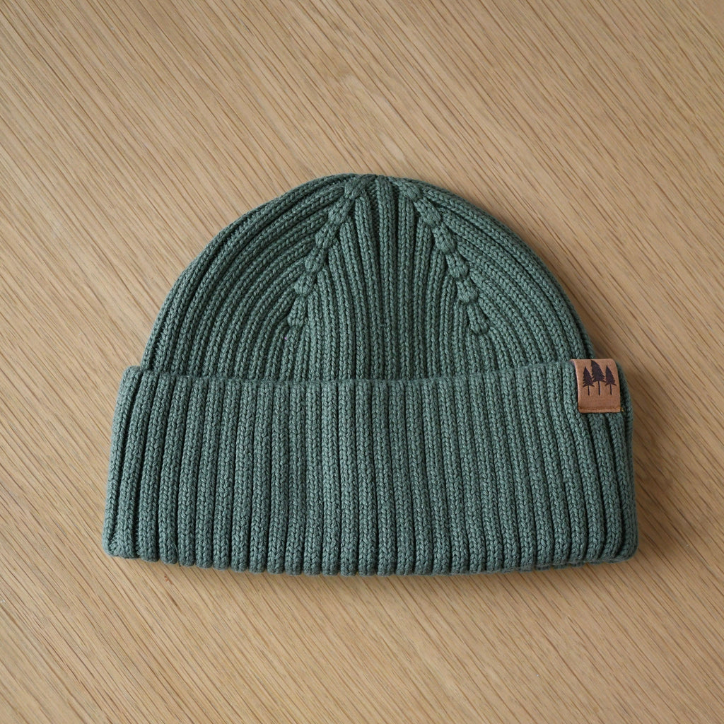 Stay cozy in style with this classic cuffed knit beanie. Made from 100% cotton for a soft, breathable feel, it’s finished with a suede leather patch embossed with our signature three-tree design. A timeless essential for chilly days — perfect for everyday wear, outdoor adventures, or gifting.