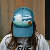 Adventure starts here with this kids’ navy trucker hat featuring a bold mountain stripe design. Built for everyday play, it combines a structured front with breathable mesh backing and an adjustable snap for the perfect fit. A fun, outdoorsy essential for little explorers who love the mountain life.