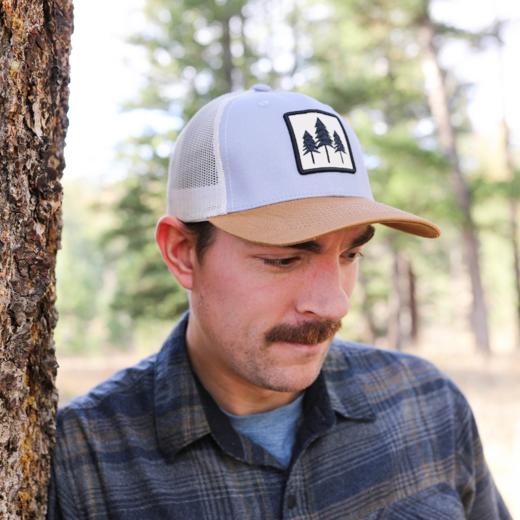 The outdoors, simplified. This tri-tone trucker pairs a mustard bill with a soft gray crown and classic cream mesh back for a timeless look. Featuring our signature three tree embroidered patch front and center, it’s a cap built for everyday wear—from trail days to town runs. With its breathable mesh, structured fit, and adjustable snapback, this trucker is as comfortable as it is versatile.