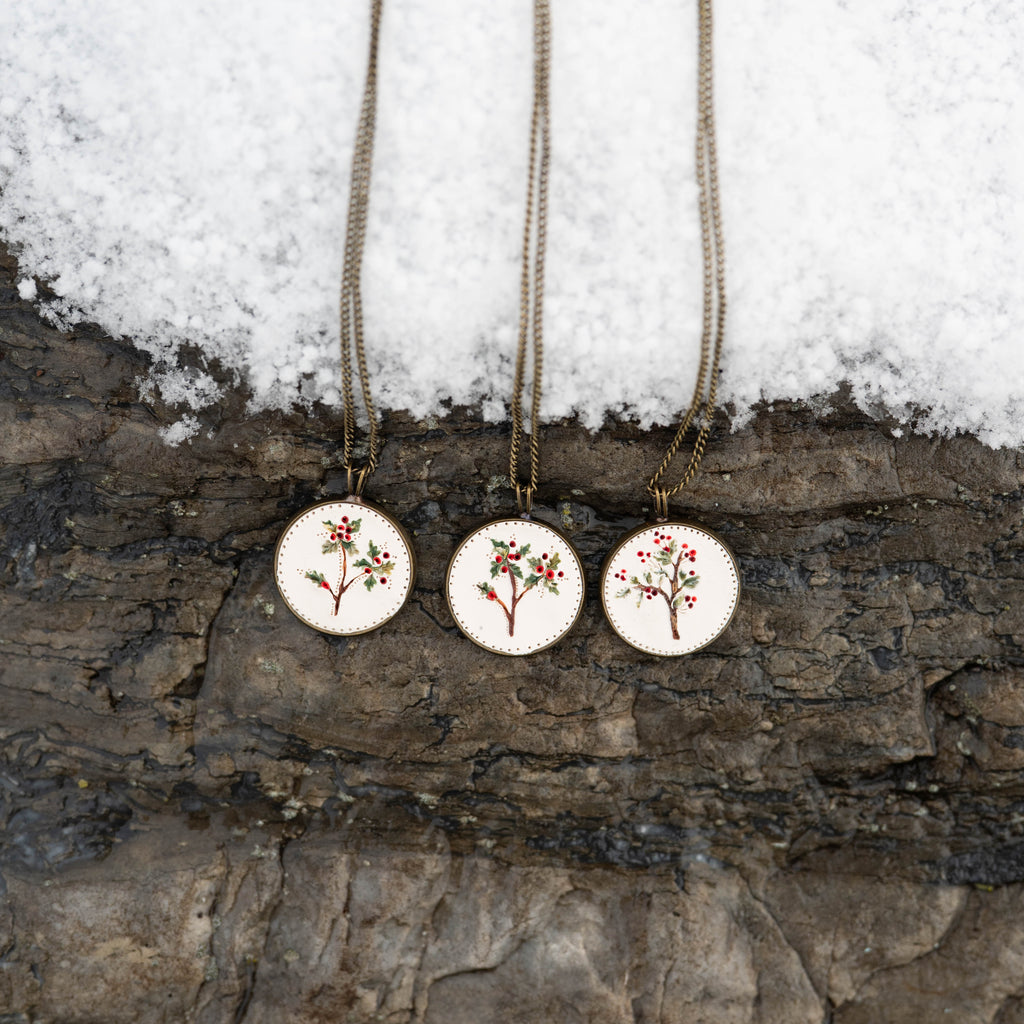 The most beautiful handmade clay necklaces come in a variety of hollyberry designs. Due to the nature of them being individually handmade they are all one of a kind. When ordering one of these special necklaces, there is no guarantee which necklace you will receive.
