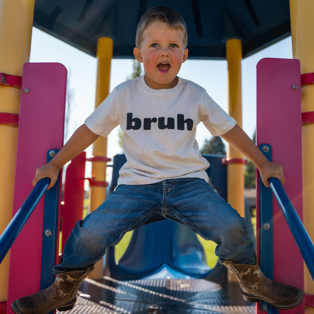 Some attitudes can’t be taught they’re just born. This heather grey toddler tee proudly says “Bruh”, capturing all the tiny human sass in one soft, comfy shirt. Made from breathable cotton that keeps up with endless play, snack time, and all the chaos in between.