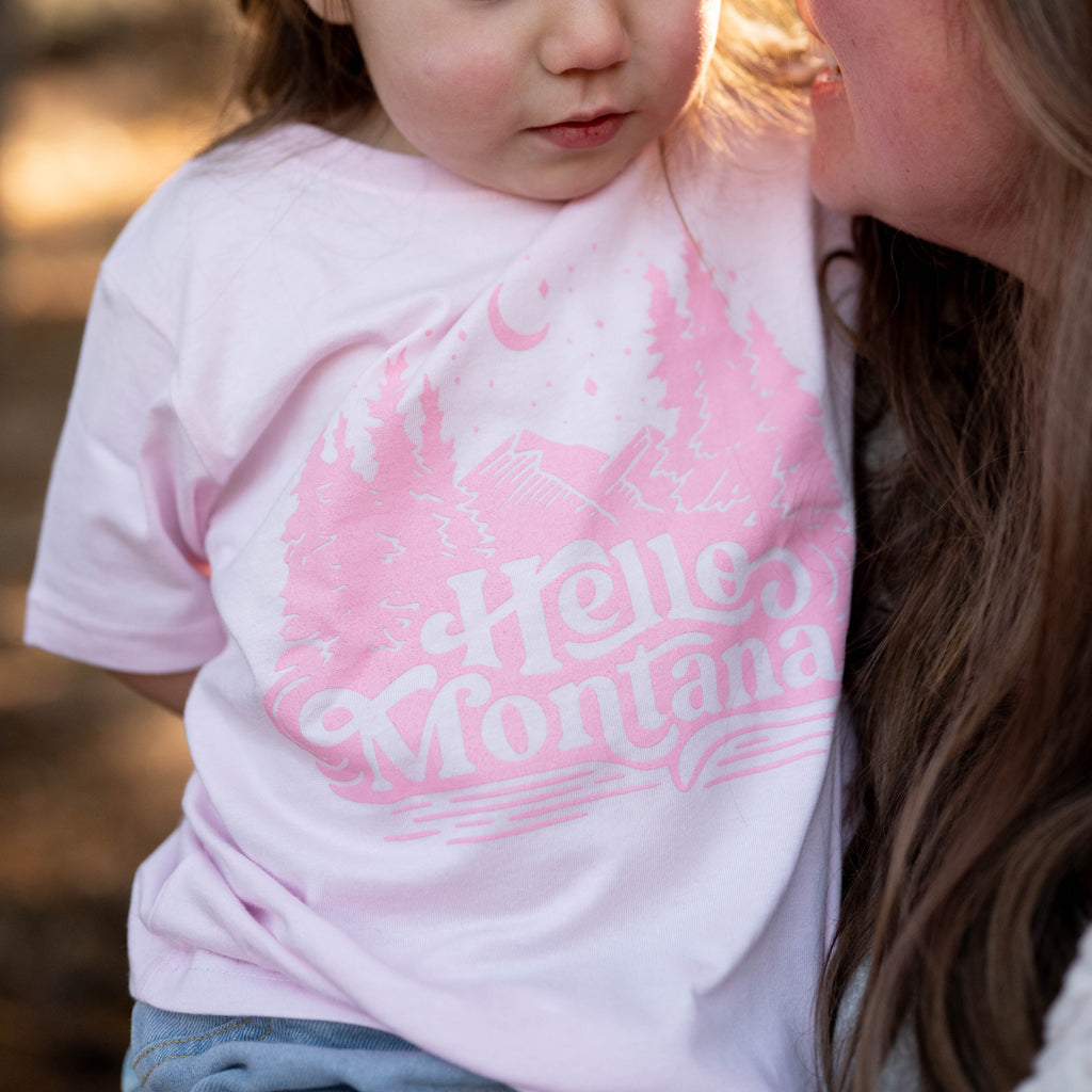 Introduce your little one to Montana with our Hello Montana Toddler Tee. Featuring a  ballerina pink, our tee will add a touch of fun to your child's wardrobe. Perfect for playdates or everyday wear, this tee is a must-have for your tiny Montanan.