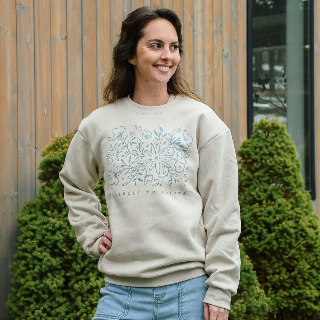 Soft, cozy, and unapologetically honest, this pullover lets your personality shine. The “Allergic to Idiots” graphic adds a playful touch to a laid-back staple you’ll reach for again and again.