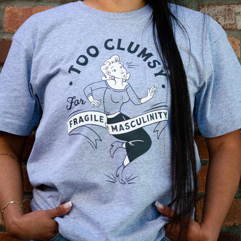 Make a bold (and witty) statement with the Too Clumsy for Fragile Masculinity tee. Featuring a retro-inspired illustration and playful typography, this unisex shirt pairs humor with a touch of sass. Made with soft, breathable cotton and a relaxed fit, it’s perfect for anyone who appreciates comfort, confidence, and a little tongue-in-cheek attitude. Wear it casually or let it spark conversations—either way, it’s bound to stand out.