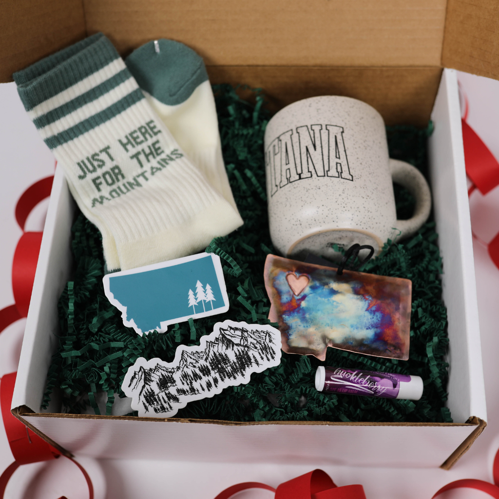 Each of our holiday gift boxes is thoughtfully curated with festive favorites and cozy seasonal finds—perfect for gifting or treating yourself. Every box arrives beautifully packaged in a white gift box, filled with decorative crinkle paper, and tied with a classic red ribbon for a ready-to-give presentation that captures the spirit of the season.