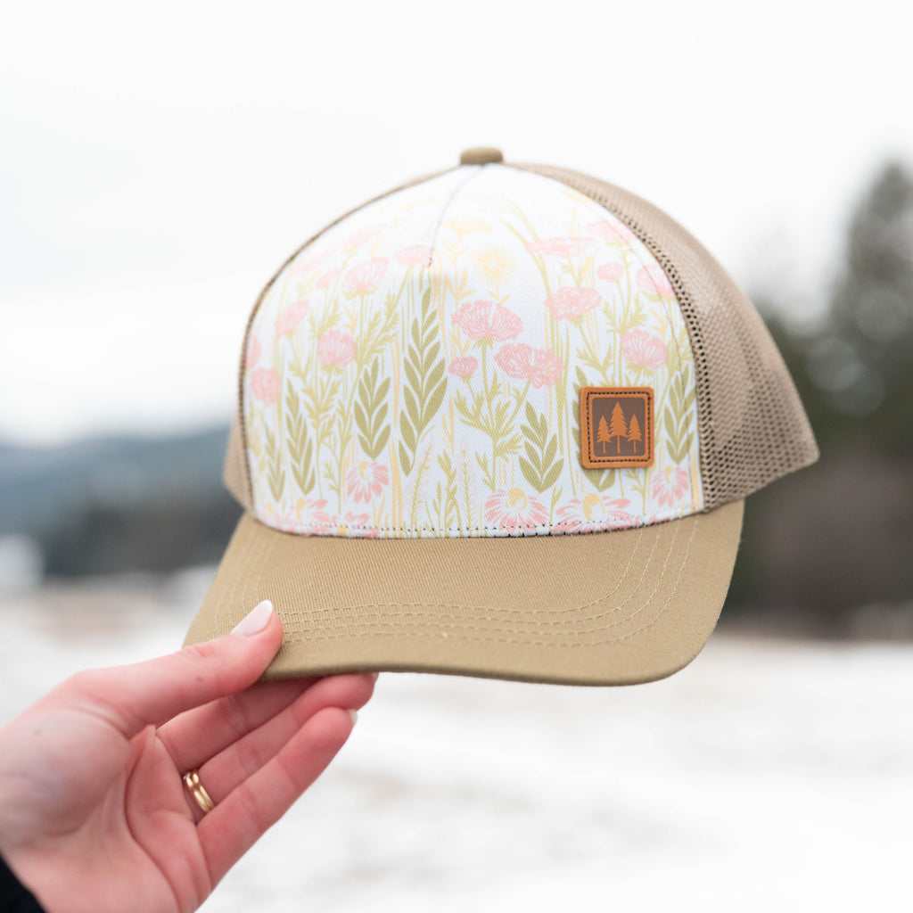 Let your free spirit bloom in this delightful sage green trucker featuring a vibrant wildflower garden in soft pinks and creams. This unisex design celebrates nature's untamed beauty with a botanical twist that feels fresh and effortlessly cool. Whether you're hiking mountain trails or just channeling your inner flower child, this hat brings earthy elegance and playful charm to your wardrobe. Comfortable, stylish, and perfect for anyone who loves the wild outdoors.